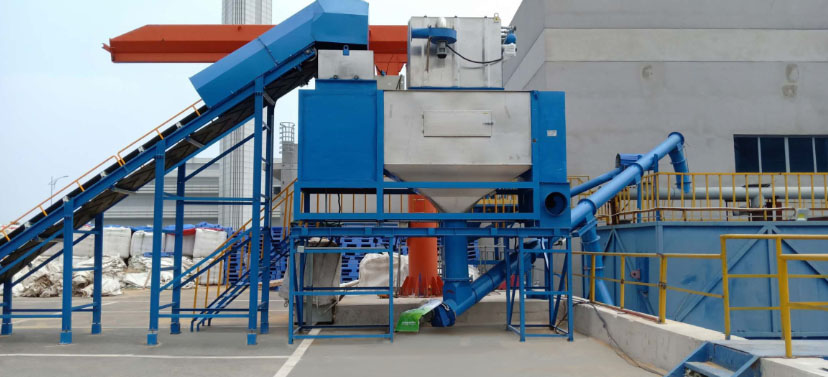 小袋自動拆包機由人工或機器人將包裝袋放到輸送機上,進行輸送到指定位置,或進入破碎機后自動拆包,物料自動分離落入下游設(shè)備。廢袋自動分離后自動壓縮,拆包的過程中產(chǎn)生的揚塵由過濾除塵器凈化過濾達標(biāo)后排出。